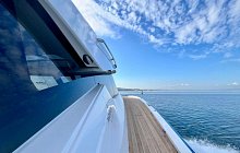 During navigation, the Aventura 38 SC is a fast and comfortable boat. Equipped with twin outboard engines of up to 800 horsepower, it can reach speeds exceeding 35 knots, while at a fast cruising speed of 23 knots, the fuel-efficient twin Yanmar diesel engines offer an economical performance.