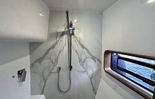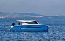The hulls are beautifully appointed with twin aft cabins and forward bathrooms with separate showers. The planing hulls are expected to provide a cruising speed of 23 knots and a top speed of 35 knots.