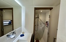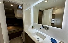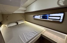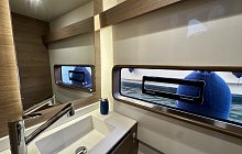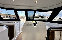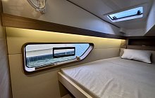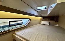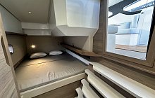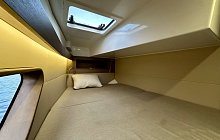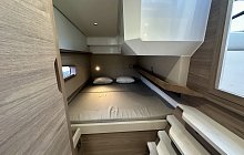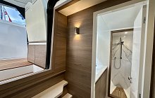 The interior is equally impressive, as the boat offers two full-length, comfortable cabins with 160cm double beds, a unique feature in this boat category, each with its own private bathroom in each hull.