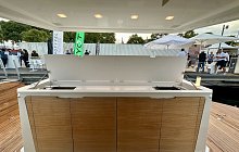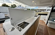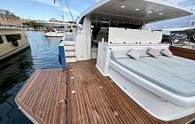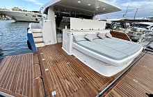 In terms of accommodations, everything on this boat is designed for your comfort and well-being both while underway and at anchor: a fully accessible deck for ideal movement, a spacious and open protective canopy with a view of the sky, clever relaxation areas at the front and rear of the boat, large foldable side decks on the port and starboard sides that serve as a terrace over the sea, a fully equipped and sheltered outdoor kitchen, vast sunbathing areas facing the sea, an expansive swim platform at the rear, and much more.