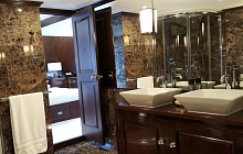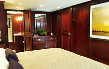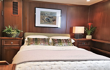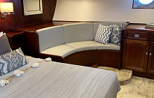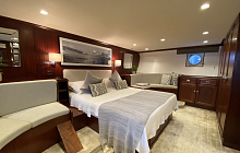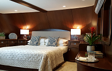 She offers accommodation for 10, with full width Master double aft, twin port, double starboard, double VIP midships with the owners suite on the main deck.