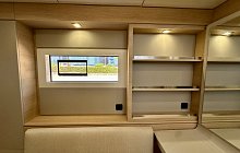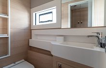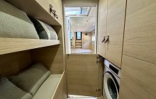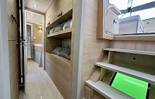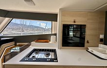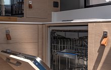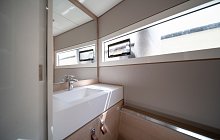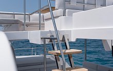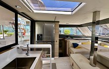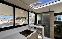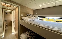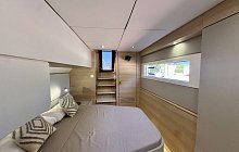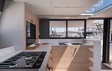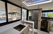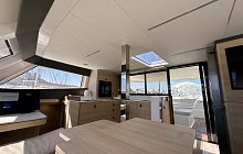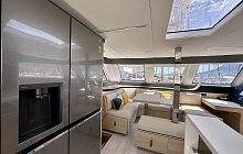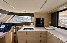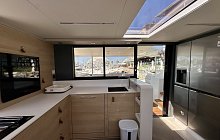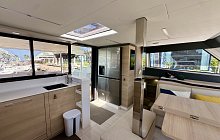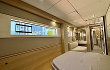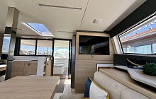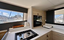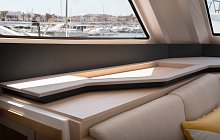 Inside, the fittings and ergonomics have been particularly studied by the architect Samer LASTA, this translates into a comfortable saloon/lounge for 8 to 10 guests, a full kitchen with a 585l fridge/freezer, an oven, a microwave, a dishwasher and finally a navigation area integrating the EmpirBus electrical management unit.