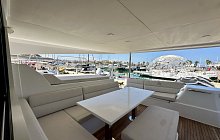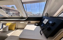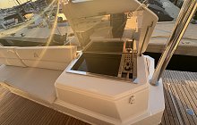 The outdoor lounge is incredible with its comfortable seats ideally arranged around a table that can accommodate up to 12 guests, its staircase allowing direct access to the roof, its sunbathing/relaxation area, its large storage spaces and its integrated plancha, it becomes the reference in the segment of less than 50 feet!