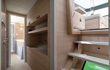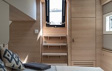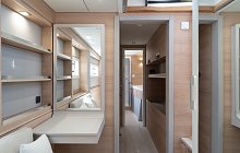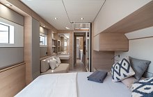 The Aventura 45 is offered as standard in a 3-cabin version including an owner's suite with office area, a real dressing room and a bathroom with separate shower and a lot of storage.