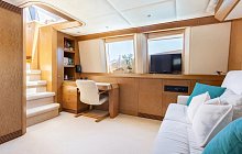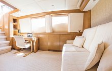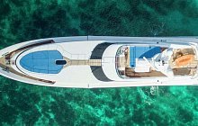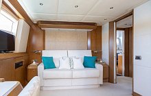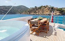 The Flybridge deck offers "alfresco" dining under a large shaded area, forward facing midship sunbed, and a deep, relaxing hot tub to enjoy a glass of your favorite chilled Champagne.