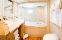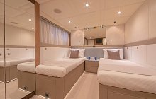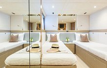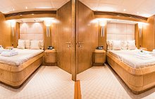 Offering 4 main cabins, Benita Blue has the ability to configure the choice of 4 double cabins, 4 double and 2 singles. She can also offer a full width master cabin, and has 2 additional Pullman Bunks. A main deck office, day head, fully fitted commercial galley and forward crew area for 5, helps to ensure quality service and uncluttered/busy guest space.