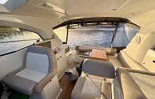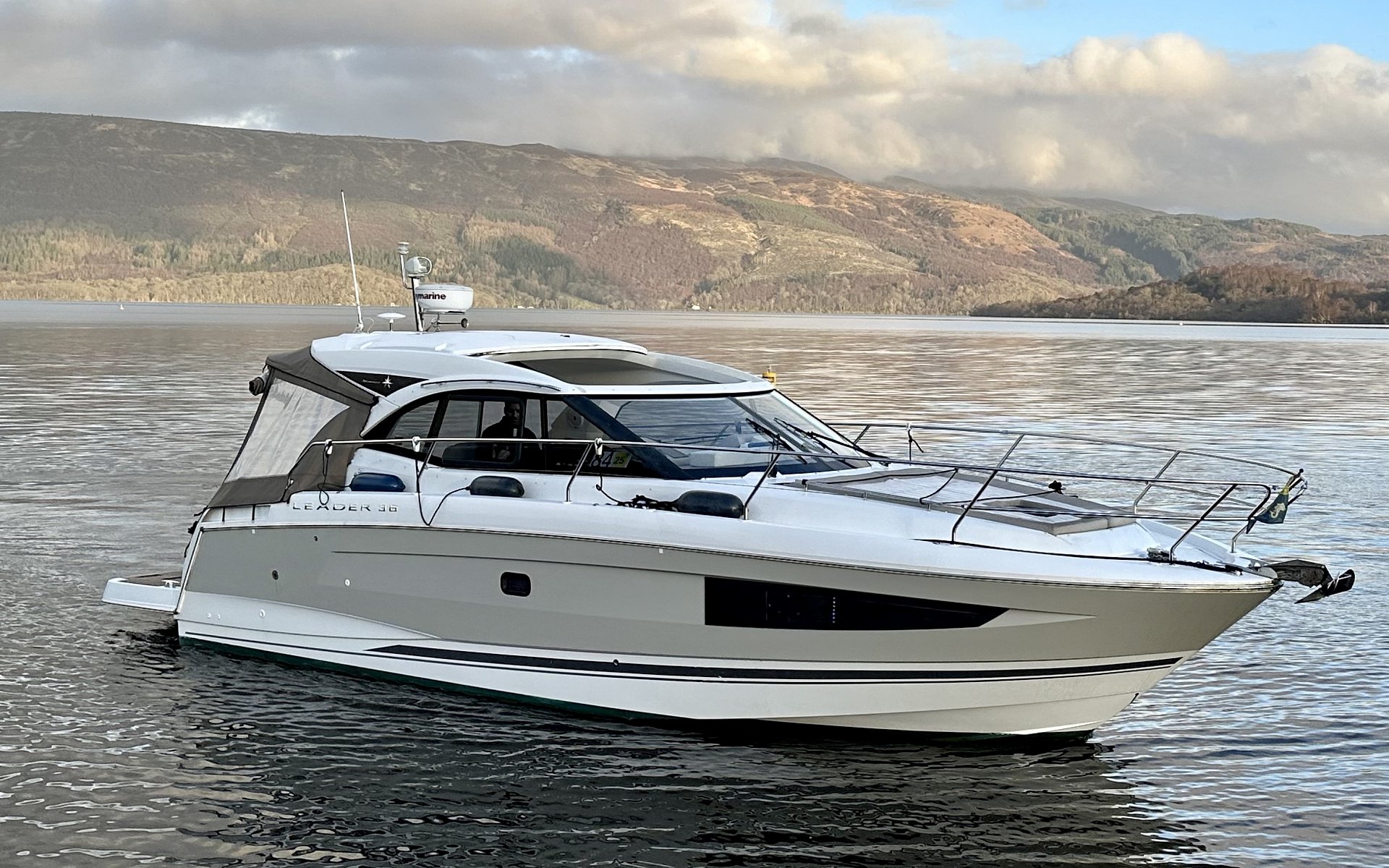 Smart Boat Sales is proud to present “Azara” a 2016 Jeanneau Leader 36 Sport Top with Twin Volvo Penta D4-260 diesel engines & equipped with bow & stern thrusters plus an electric hard top roof. This 11.6m x 3.62m Motor-Yacht offers 5 Berth’s in two private cabins, head compartment with separate shower & an attractive, well-equipped galley.
