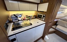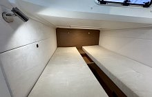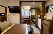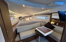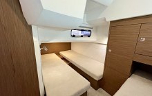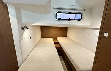 In the same spirit, the interior features a head compartment with separate shower, an at-tractive, well-equipped galley, two spacious cabins and copious storage, all to ensure that no comfort is spared when spending the night on board. The spacious, bright saloon, with an impressive view of the sea, encompasses the forward cabin, which in the evening be-comes a private space, a true parental suite, with its very clever modular design: a pocket door and a modular berth, which can be partially removed and tucked away when not in use. Aboard the Leader 36, each moment in life verges on perfection.