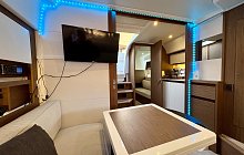 The convenience of the electric hardtop reduces the amount of canopy area, making it easier and quicker to get straight out on the water and the vessel also benefits from diesel-fired heating to cabin & cockpit, extending your cruising season.