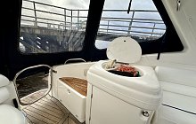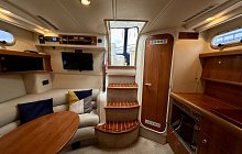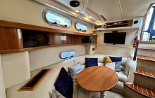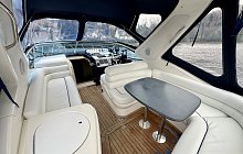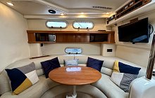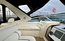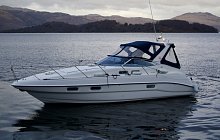 Sealine S34 with twin Volvo Penta AD41 diesel engines, 6 berth accommodation, 2 private cabins, HUGE specification includes; Bow Thruster, Raymarine touch screen chartplotter, Fish Finder, VHF, Fusion media with helm control, remote spotlight, Eberspacher diesel heating, AC, teak to swim platform and cockpit, wet bar/sink, new canopy, service history, IMMACULATE engine room, 4 Keys, part exchange considered, very nice example of this popular motor yacht, ideal family boat, viewing highly recommended.