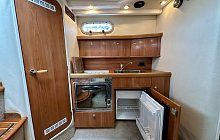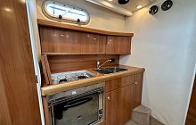 Fully equipped galley (gas hob, oven/grill, fridge, sink)