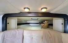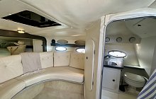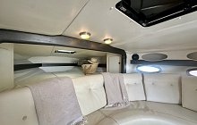 The engines are exceptionally clean and run quietly at cruising speeds, yet deliver an exhilarating V8 roar when pushed. Below deck, the cabin presents beautifully, with the original lining in excellent condition and upholstery having been recently renewed.